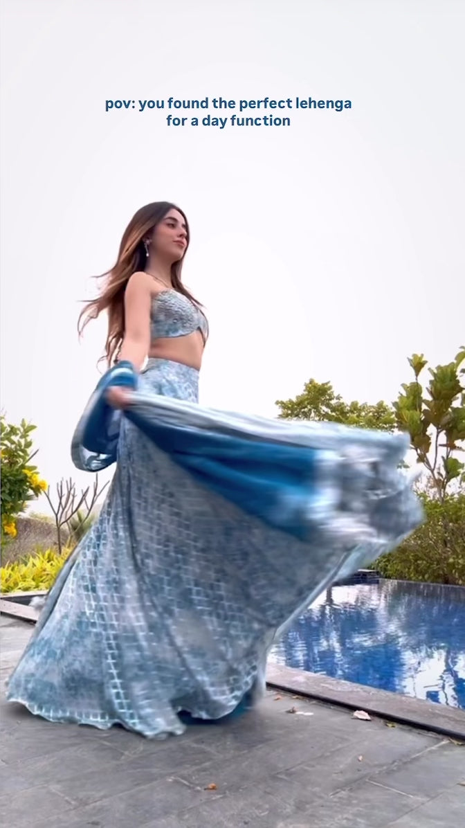BRALETTE BUSTIER WITH FLARED SKIRT PAIRED WITH ORGANZA DUPATTA
